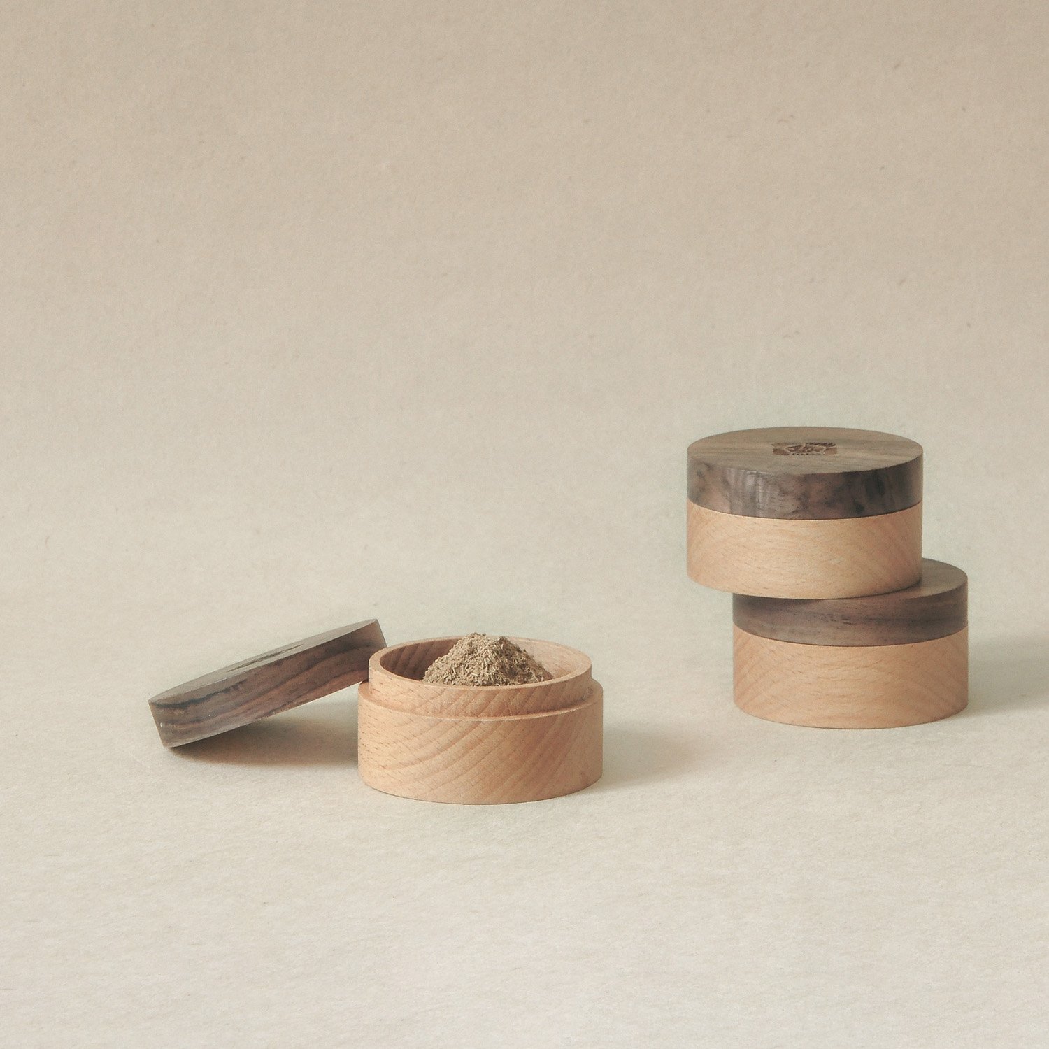 Chất liệu hũ đựng bột trầm: gỗ dẻ gai + gỗ óc chó.
